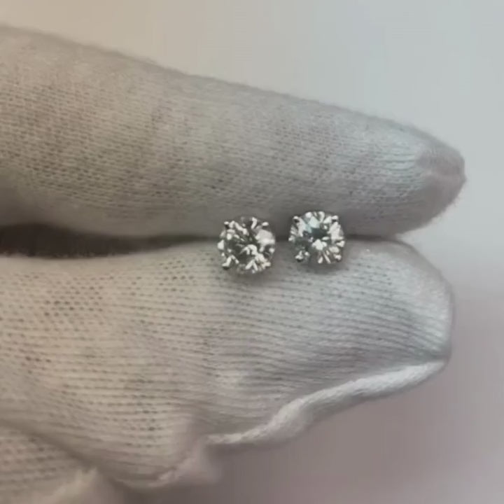 Stone Specifications : There is one diamond approx. 0.95 carats in each earring. Natural earth-mined diamonds.