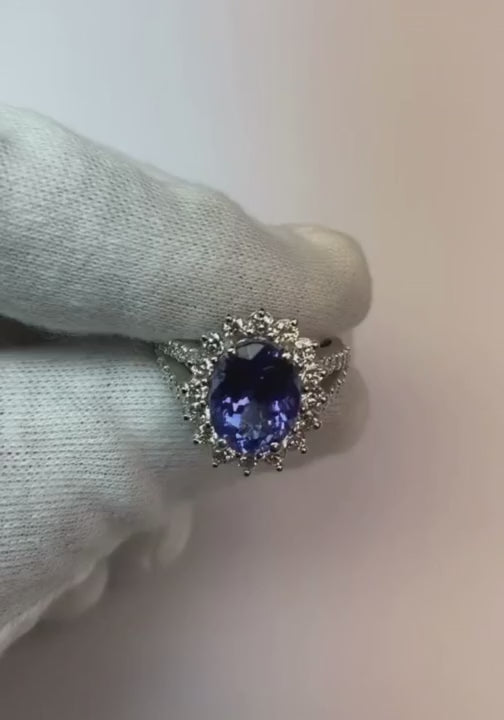 Tanzanite And Natural Earth Mined Diamonds 4.75 Carats Wedding Ring Gold White