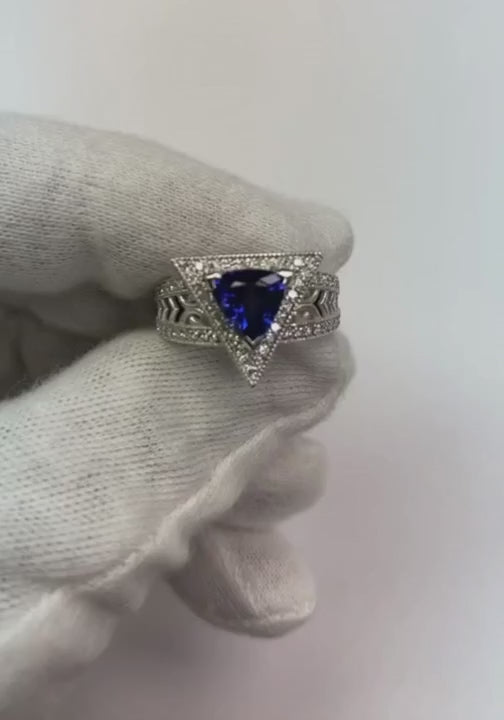 Trillion Gemstone Ring Antique Style Ceylon Sapphire 1.50 Carats Gold