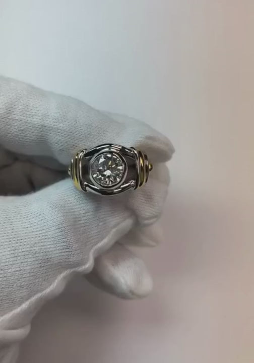 Two Tone Natural Earth Mined Diamond Solitaire Mens Ring Bezel Set 2 Carats