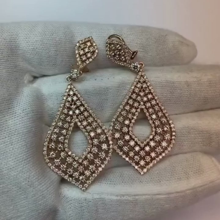 White Gold 14K Women Chandelier Earring Round Natural Earth Mined Diamonds 5 Carats