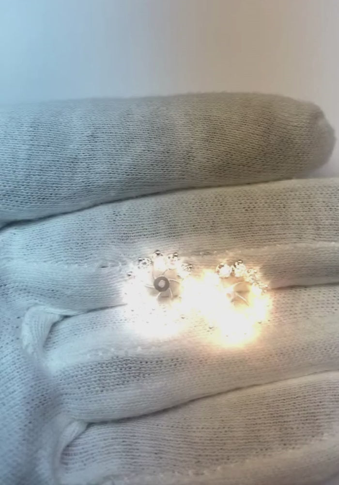 Stone Specifications : There is one diamond in the center of approx. 0.50 carats (approx. diameter 5.0 mm) and round diamonds on the side 0.13 carats in each earring. Natural earth-mined diamonds.