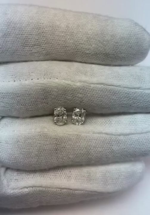 Women 1.40 Carats Oval Cut Natural Earth Mined Diamond Stud Earring White Gold 14K