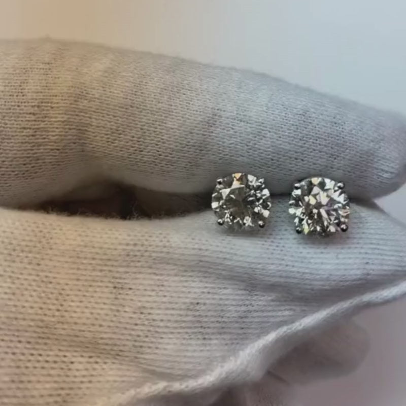 Stone Specifications: There is one diamond approx. 2 carats (Approx. Dia. 8 mm) in each earring. Natural earth-mined diamonds.