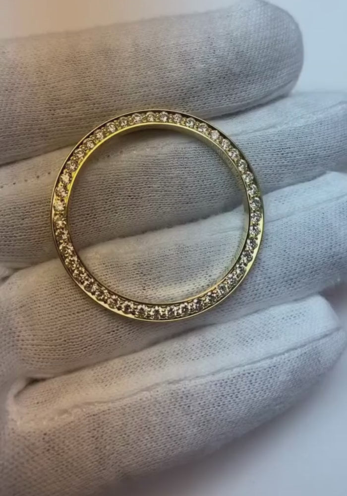 Yellow Gold Custom Diamond Bezel To Fit Rolex Datejust Watch 2 Carats