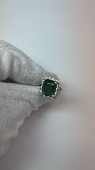 Zambian Green Emerald And Natural Earth Mined Diamond Engagement Ring 11.50 Carats Two Tone 14K